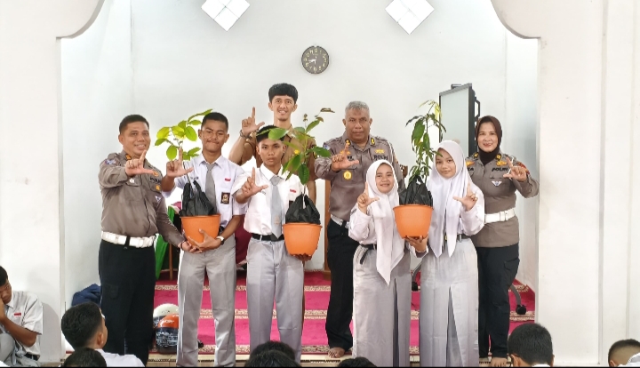 Tidak hanya fokus pada keselamatan di jalan, Ditlantas Polda Riau juga mengintegrasikan program Green Policing sebagai bentuk kepedulian terhadap lingkungan. Dalam kesempatan tersebut, diserahkan bibit pohon berbuah kepada pihak sekolah sebagai simbol komitmen bersama dalam menjaga kelestarian alam.