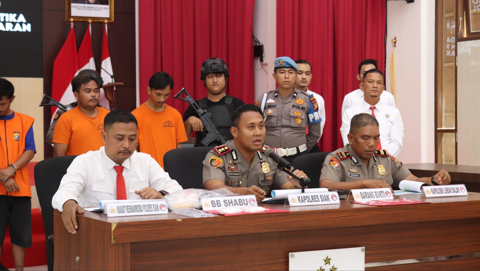 Konferensi pers tersebut dihadiri Kapolres Siak AKBP Sepuh Ade Irsyam Siregar, S.H., S.I.K., M.H., Kasat Resnarkoba Polres Siak AKP Benny Afriandi Siregar, S.H., M.H. bersama jajaran dan Kapolsek Lubuk Dalam IPTU Marhengky S.Sos., M.H., serta . Pengungkapan ini sekaligus menandai keberhasilan jajaran Satres Narkoba dan Polsek dalam mengungkap kasus narkotika secara beruntun hanya dalam hitungan hari.