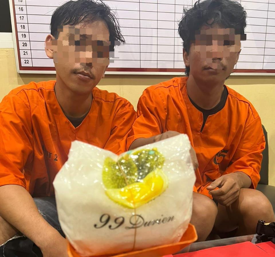 “Tim kami kemudian menghentikan sepeda motor tersebut dan melakukan pemeriksaan. Setelah dilakukan penggeledahan, ditemukan sebuah tas sandang berwarna hitam di dalam jok motor. Di dalam tas tersebut, terdapat satu paket besar sabu-sabu seberat 1 kilogram yang dibungkus dalam plastik bertuliskan ’99 Durien’,” jelas AKBP Angga.