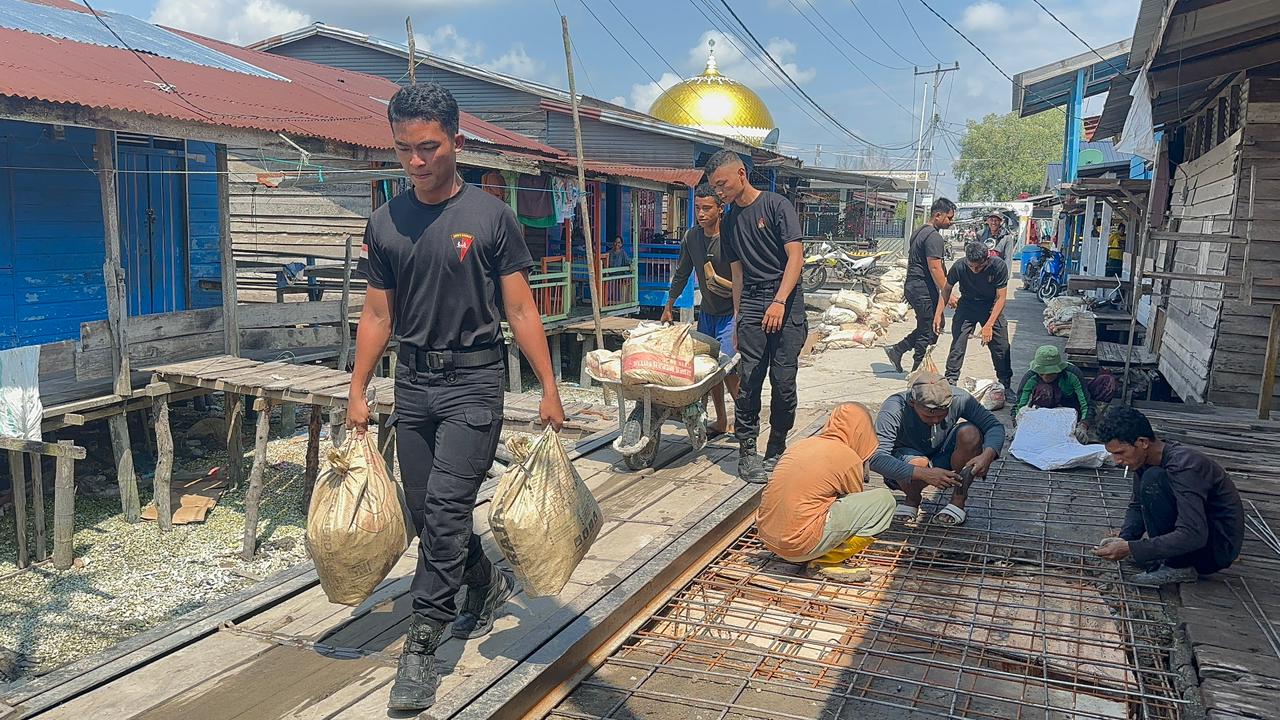 Brimob Polda Riau dan Polres Rohil Gotong Royong di Panipahan, Wujud Nyata Kepedulian Polri