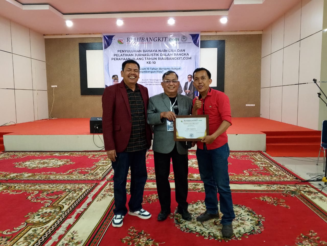 SIAK,- Kegiatan Pelatihan Jurnalistik dan Penyuluhan Bahaya Narkoba yang digelar Riaubangkit.com (RBC) di Gedung Maharatu Siak, Kamis (20/11/2025), berlangsung meriah dan sarat edukasi. Selain diisi materi jurnalistik dan penyuluhan bahaya narkoba, acara ini juga menjadi momentum penting penganugerahan penghargaan kepada pemerintah daerah serta wartawan berprestasi.