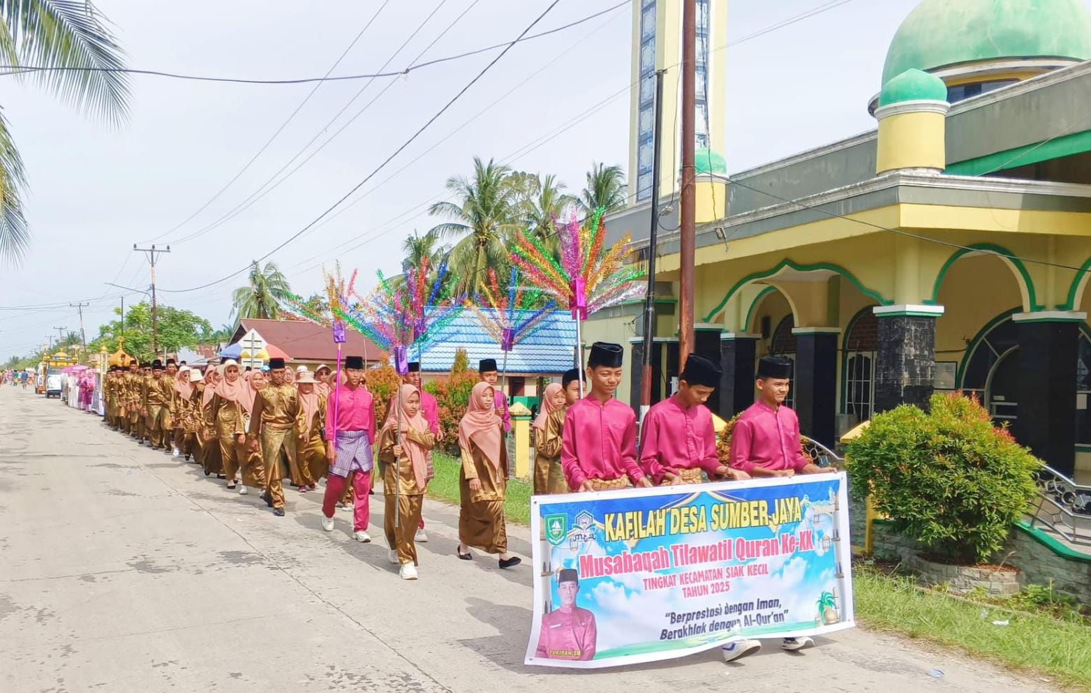 BENGKALIS,- Pemerintah Desa Sumber Jaya mengutus ratusan peserta untuk mengikuti Pawai Taaruf sempena Perhelatan Musabaqah Tilawatil Quran (MTQ) ke-20 Tingkat Kecamatan Siak Kecil 2025.