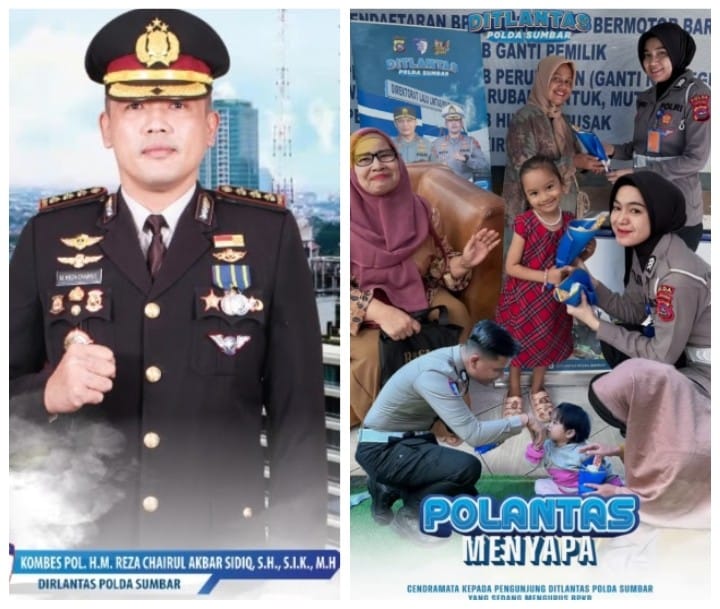 PADANG,- Tidak semua bentuk pelayanan publik diukur dari seberapa cepat administrasi selesai. Kadang, kehangatan dan kepedulian kecil justru meninggalkan kesan besar di hati masyarakat. Hal inilah yang ingin dihadirkan oleh Direktorat Lalu Lintas (Ditlantas) Polda Sumatera Barat di bawah kepemimpinan Kombes Pol H.M. Reza Chairul Akbar Sidiq, S.H., S.I.K., M.H., melalui program bertajuk “Polantas Menyapa.”
