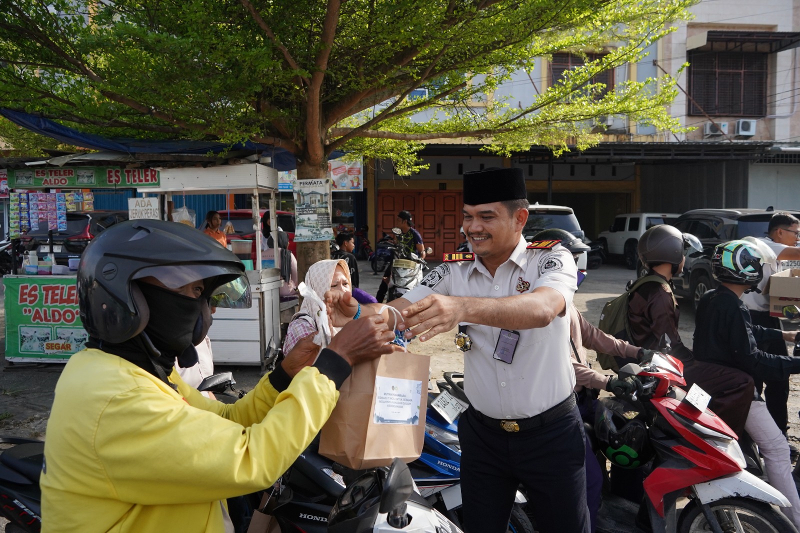 PEKANBARU,– Dalam semangat berbagi di bulan suci Ramadan, Rumah Tahanan Negara (Rutan) Kelas I Pekanbaru menggelar kegiatan pembagian takjil kepada masyarakat yang melintas di Jalan Hangtuah, Pekanbaru. Kegiatan ini menjadi wujud kepedulian sosial sekaligus bentuk nyata dukungan terhadap pelaku Usaha Mikro, Kecil, dan Menengah (UMKM) di sekitar lingkungan rutan.