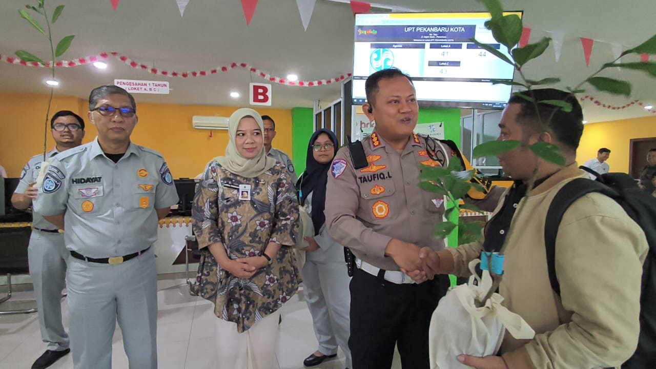 Sementara itu, Kakanwil PT Jasa Raharja Riau M. Hidayat menjelaskan bahwa pelayanan humanis Samsat merupakan bentuk kepedulian terhadap keselamatan dan lingkungan. “Pembagian bibit pohon ini bukan sekadar simbol, tetapi ajakan untuk peduli lingkungan sekaligus tertib administrasi. Keselamatan dan tanggung jawab sosial harus menjadi budaya bersama,” tegasnya.