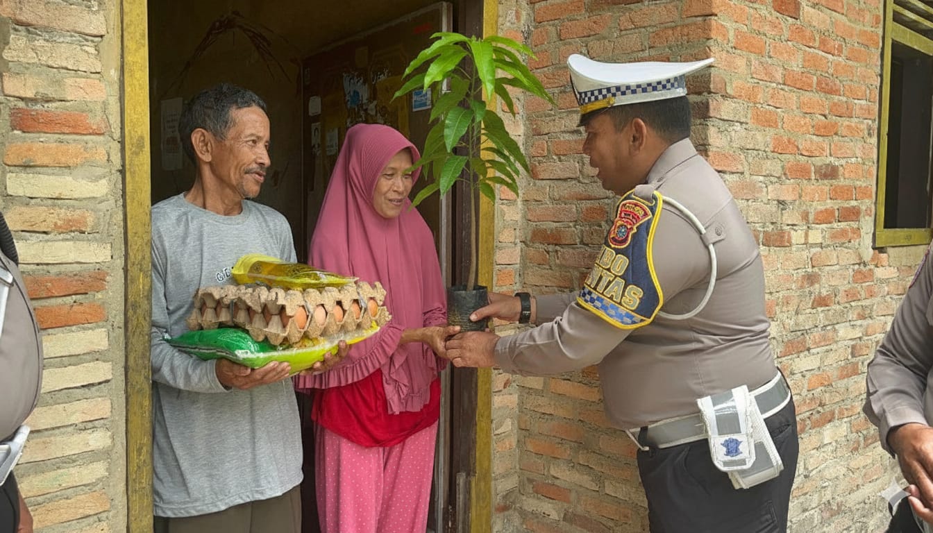 Dalam kegiatan ini, Satlantas Polres Kampar memberikan paket sembako berupa beras 5 kg, telur 1 papan, dan minyak goreng 1 kg yang diterima langsung oleh 2 orang kepala keluarga, Bapak Idris dan Bapak Nasir Sihat.