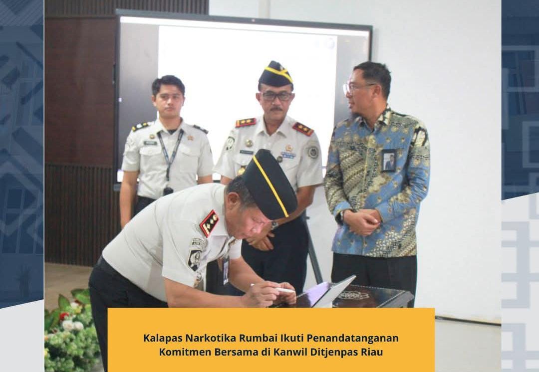 PEKANBARU,- Kepala Lembaga Pemasyarakatan (Lapas) Narkotika Kelas IIB Rumbai turut melaksanakan Penandatanganan Komitmen Bersama Pembangunan Zona Integritas yang digelar di Kantor Wilayah Direktorat Jenderal Pemasyarakatan (Ditjenpas) Riau, Rabu (4/2/2026).
