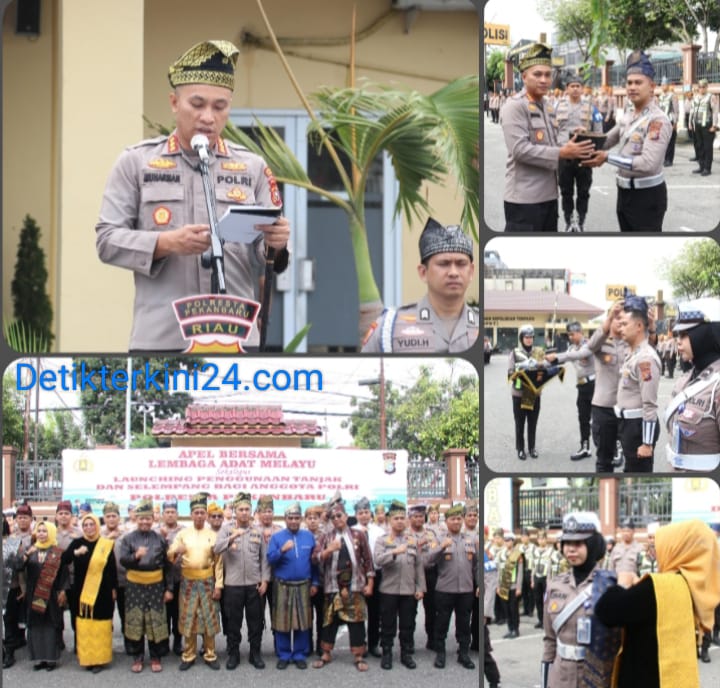 PEKANBARU,– Kapolresta Pekanbaru memimpin langsung Apel Launching Penggunaan Tanjak dan Selempang bagi Anggota Polri bersama Lembaga Adat Melayu Riau (LAM), yang dilaksanakan pada Jumat (20/02/2026) pukul 08.00 WIB di halaman depan Mapolresta Pekanbaru.