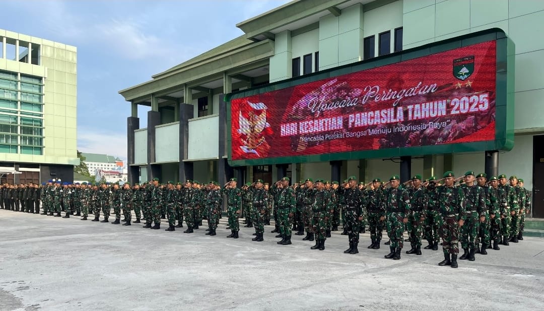 PEKANBARU,- Kodam XIX/Tuanku Tambusai melaksanakan upacara peringatan Hari Kesaktian Pancasila yang berlangsung khidmat di Lapangan Upacara Markas Kodam XIX/Tuanku Tambusai Jl. Mayor Ali Rasyid, Rabu (1/10/2025).