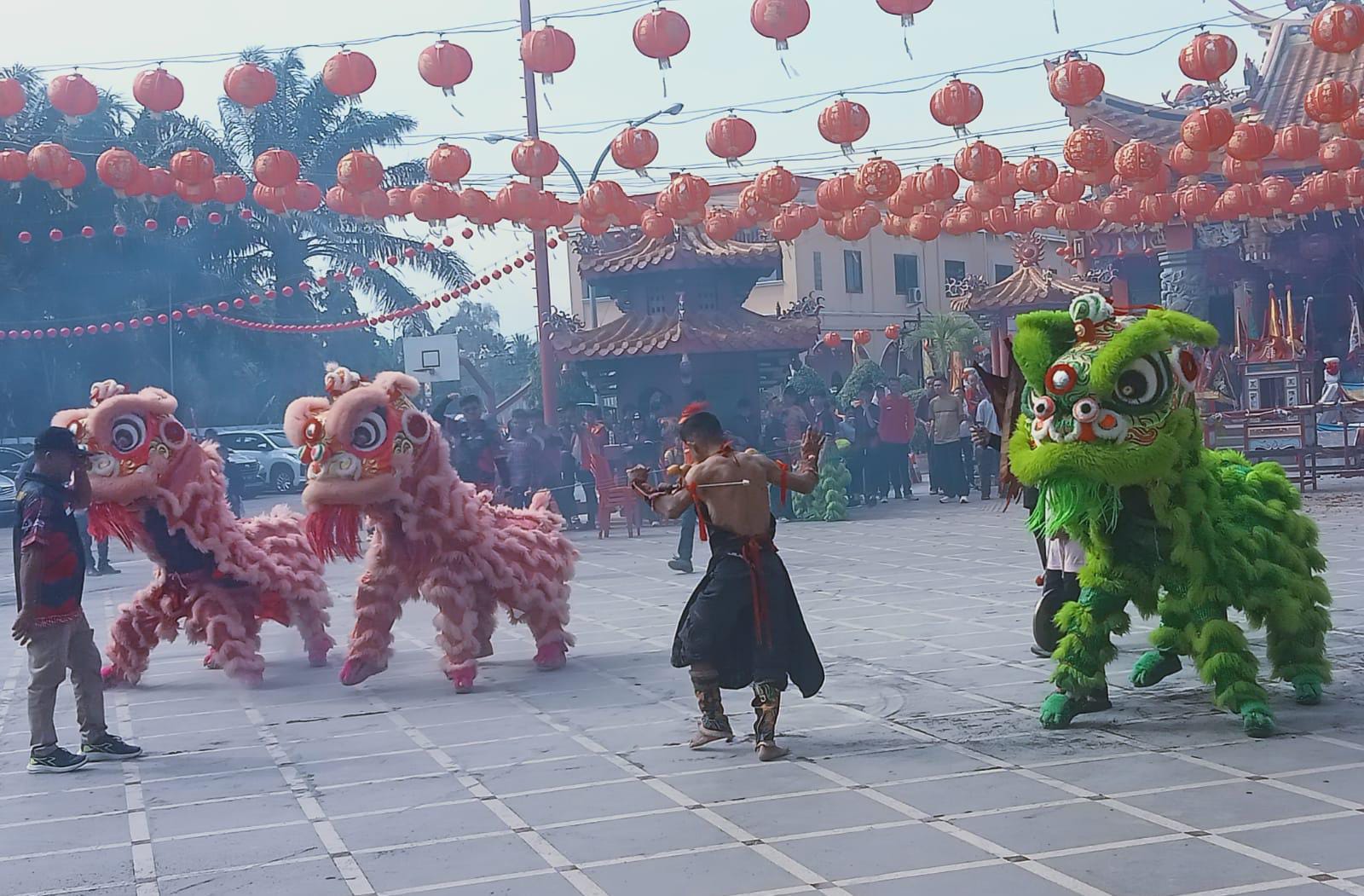 Ratusan umat dan warga memadati kawasan klenteng sejak pagi hingga siang untuk beribadah sekaligus menyaksikan rangkaian perayaan Imlek.