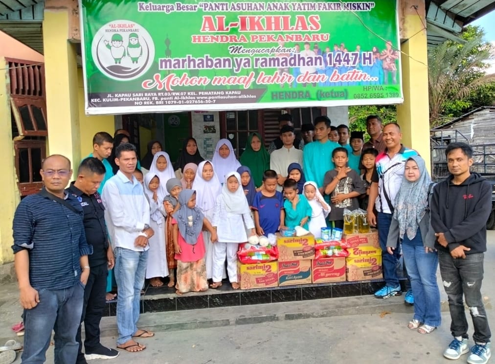PEKANBARU,- Pimpinan Redaksi Media Online (MO) Fakta Wicara, Jasril Rz bersama seluruh pengurus, memberikan paket paket Sembako ke Panti Asuhan Al- Ikhlas yang berada di Jalan Kapau Sari Raya, RT. 03/ RW. 07. Kelurahan Pematang Kapau, Kecamatan Kulim, Kota Pekanbaru, Rabu (11/03/2026).