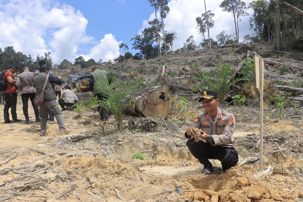 BALUNG,– Kapolres Kampar AKBP Muhardi Mirwan menunjukkan komitmen nyata dalam pelestarian lingkungan dengan ikut serta dalam kegiatan penanaman pohon di Desa Balung, Kecamatan XIII Koto Kampar, Kabupaten Kampar, Riau, Senin (9/6/2025). Aksi penanaman pohon ini menjadi bagian penting dari upaya pemulihan ekosistem hutan lindung yang sebelumnya rusak akibat perambahan ilegal.