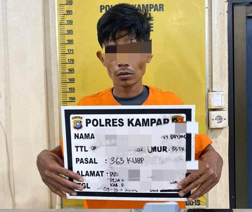 Setelah itu, korban membuat laporan dan dilakukan penyelidikan. Kita saat itu terkendala dengan kurangnya barang bukti dan akhirnya diketahuilah pada Kamis (9/10/2025) sekira pukul 22.00 Wib Tim Resmob Sat Reskrim Polres Kampar mendapatkan informasi pelaku berada di Jl. Lintas Bangkinang-Petapahan, Desa Bukit Payung.