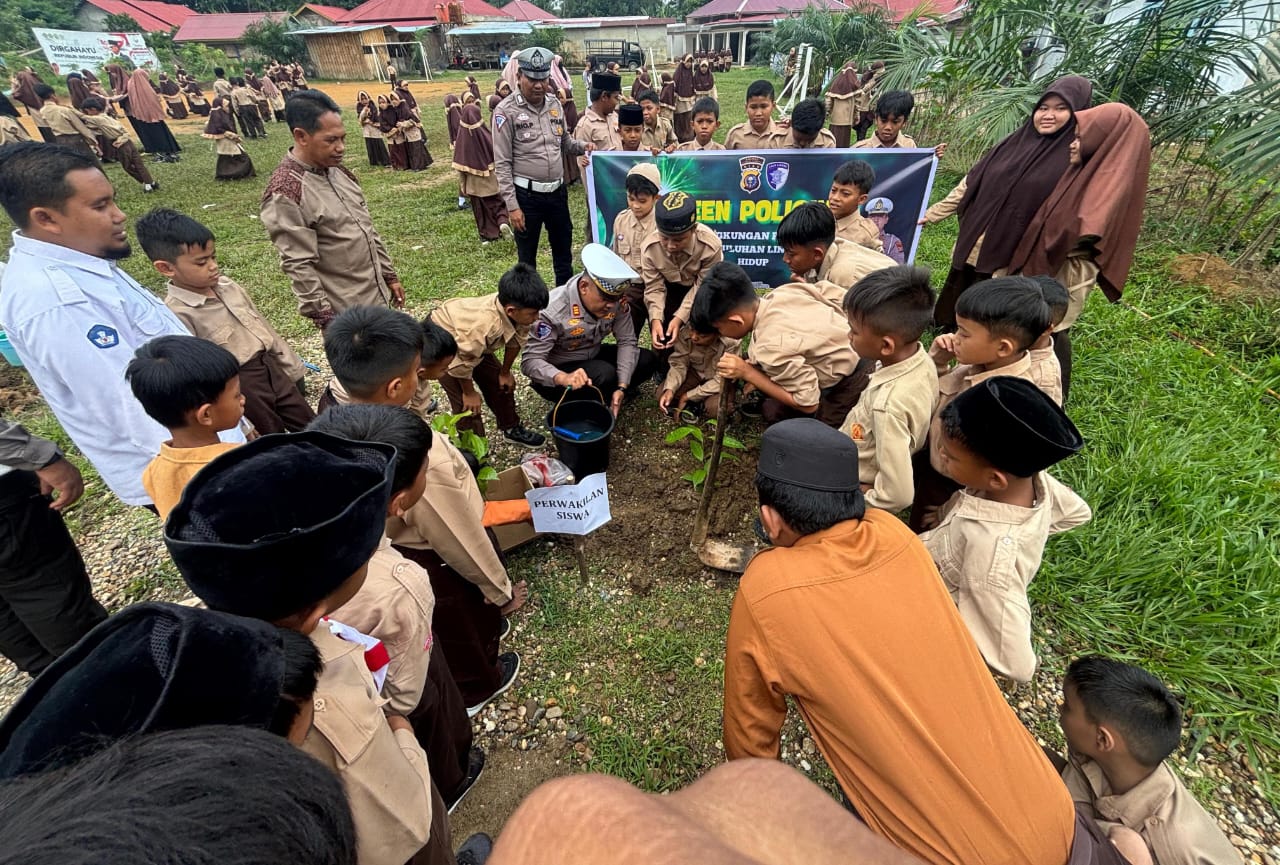 “Melalui kegiatan ini, kami ingin menanamkan nilai kepedulian lingkungan kepada anak-anak sejak dini. Penanaman pohon bukan hanya simbol, tetapi bentuk nyata komitmen bersama dalam menjaga bumi agar tetap hijau untuk masa depan,” ujar AKP A. Ramadhan mewakili Kapolres.