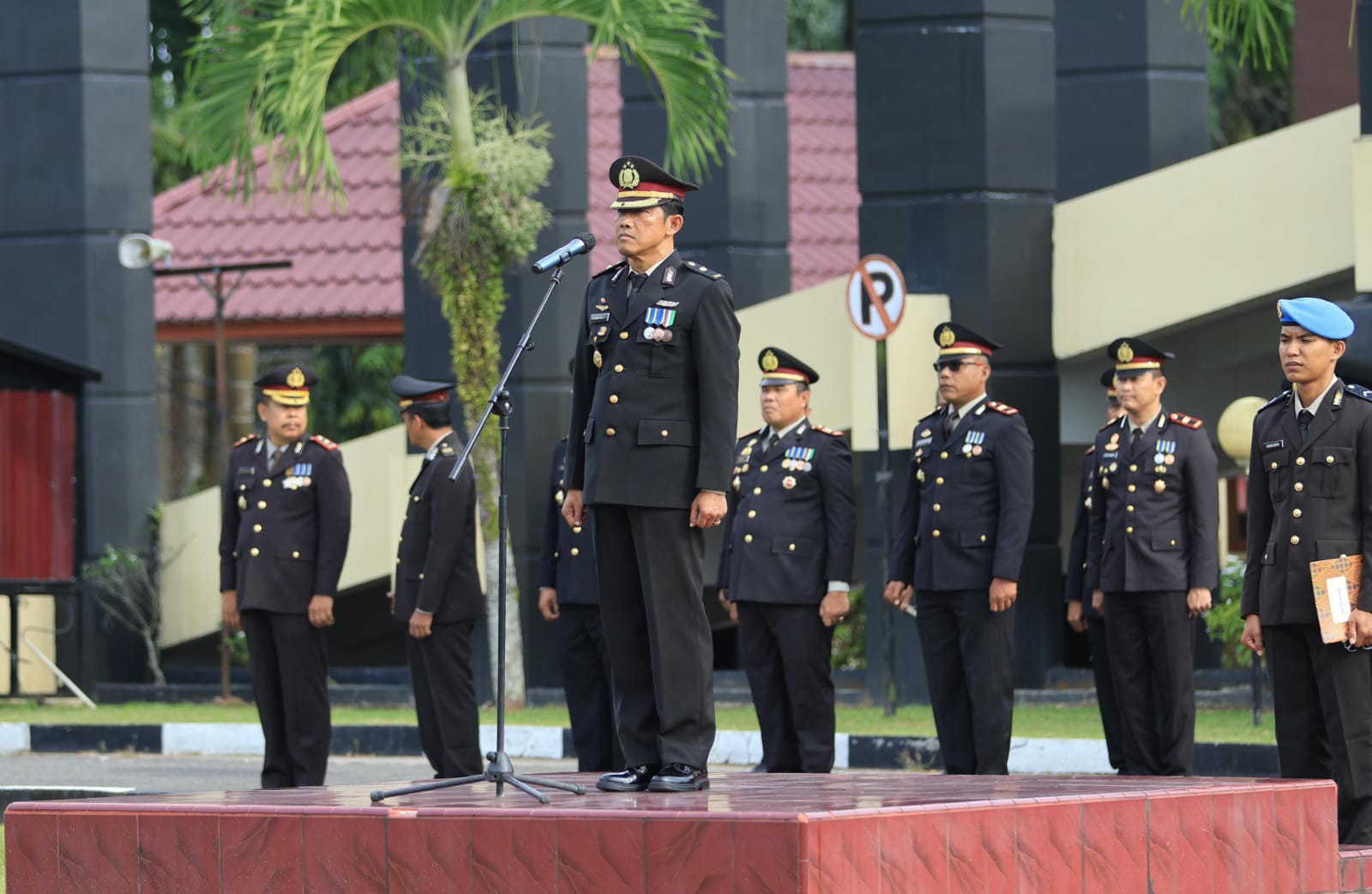Upacara tersebut diikuti oleh para pejabat utama dan seluruh personel Polres Kuansing. Hadir dalam kegiatan antara lain Kabag SDM Polres Kuansing KOMPOL Y. Emanuel Bambang Dewanto, S.H., Kabag Ren AKP Akmal, S.E., Kabag Log AKP Syarief Sujono, Kasat Intelkam AKP Syurfanaidi, S.H., Kasat Binmas KOMPOL Yuhelmi, Kasat Samapta AKP Repriadi, S.E., Kasat Lantas AKP A. Ramadhan, S.Sos., M.Si., Kasat Resnarkoba AKP Hasan Basri, S.H., M.H., Kasi Propam IPTU Bambang Saputra, para Kapolsek jajaran, perwira, serta seluruh personel Polres Kuansing.