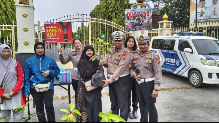 Antusiasme masyarakat terlihat tinggi saat sesi kuis interaktif digelar. Para peserta yang berhasil menjawab pertanyaan diberikan hadiah berupa helm, tumbler, buku panduan keselamatan berlalu lintas, balon, hingga bibit pohon sebagai bentuk apresiasi sekaligus edukasi nyata.