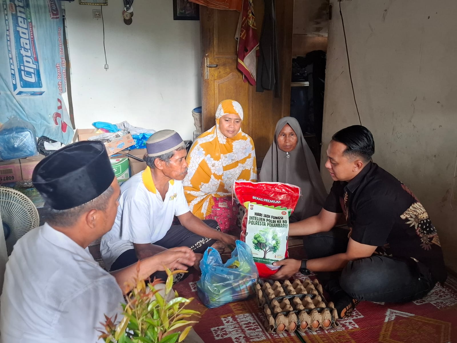 Dalam kegiatan tersebut, Sat Intelkam Polresta Pekanbaru menyerahkan bantuan berupa paket sembako yang terdiri dari beras 10 kilogram, telur satu papan, dan minyak goreng dua kilogram. Selain itu, sebagai bentuk dukungan terhadap program Green Policing, turut diserahkan bibit pohon mahoni kepada warga guna mendorong kepedulian terhadap kelestarian lingkungan.