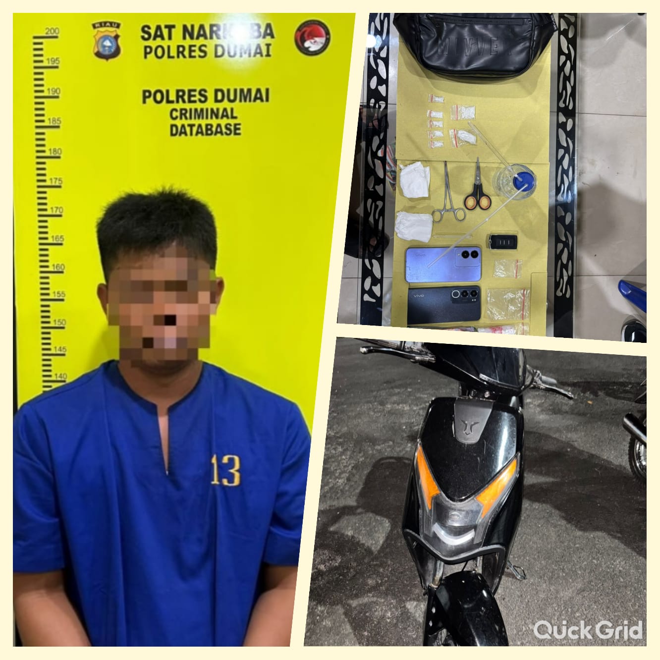 Kapolres Dumai AKBP Angga Febrian Herlambang S.I.K, S.H saat dikonfirmasi melalui Kasat Narkoba yang diwakili oleh Kanit I Iptu Lius Mulyadin SH menerangkan, selain narkotika jenis sabu-sabu, pihaknya juga berhasil mengamankan barang bukti dua unit handphone Android merk Vivo, satu unit sepeda motor listrik merk U-Winfly, uang tunai sejumlah Rp610.000.