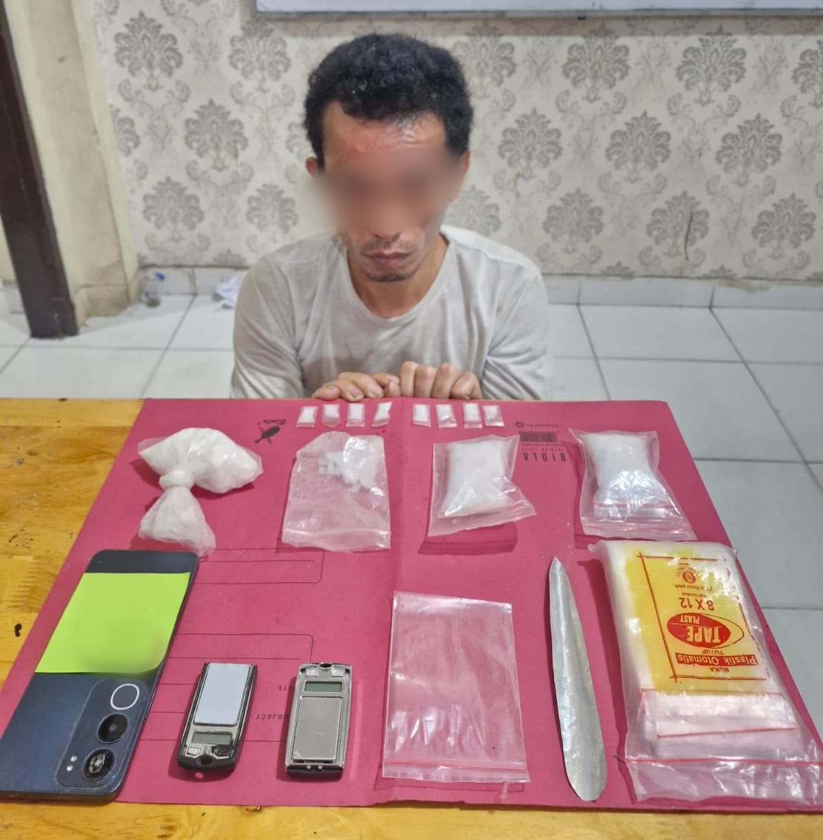 Dari hasil pemeriksaan, tersangka mengaku memperoleh sabu dari dua orang berinisial BS dan AT yang kini berstatus DPO. Tes urine menunjukkan tersangka positif mengandung amphetamine dan methamphetamine.