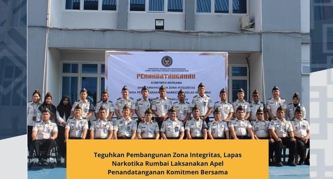 PEKANBARU,– Lembaga Pemasyarakatan (Lapas) Narkotika Kelas IIB Rumbai melaksanakan kegiatan Penandatanganan Komitmen Bersama Pembangunan Zona Integritas sebagai wujud nyata komitmen dalam mewujudkan tata kelola pemerintahan yang bersih, transparan, dan berintegritas, Senin (9/2/2026).